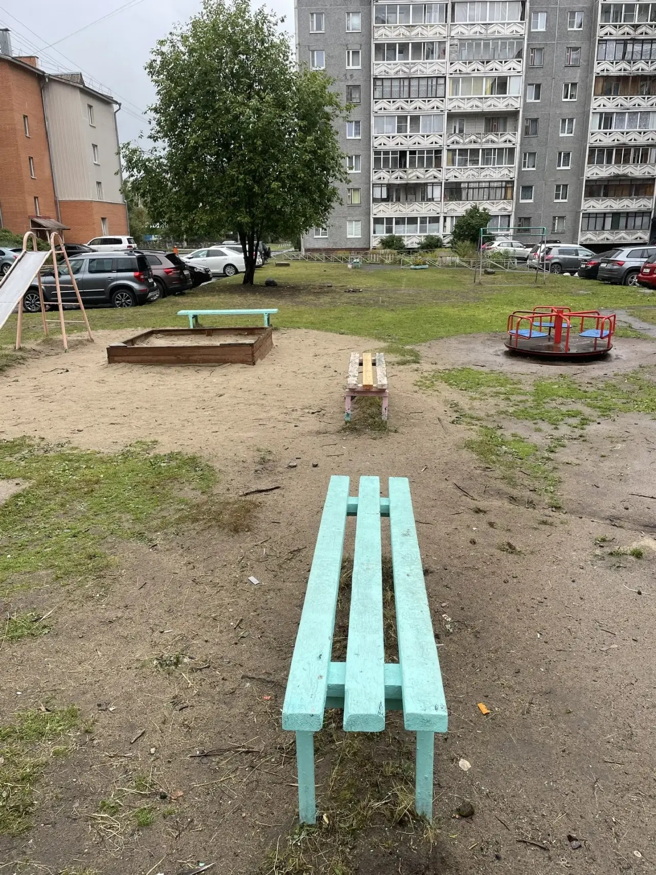 По заявлению собственников выполнены работы по ремонту скамеек на детской площадке по Лососинскому шоссе 34/1, 36.