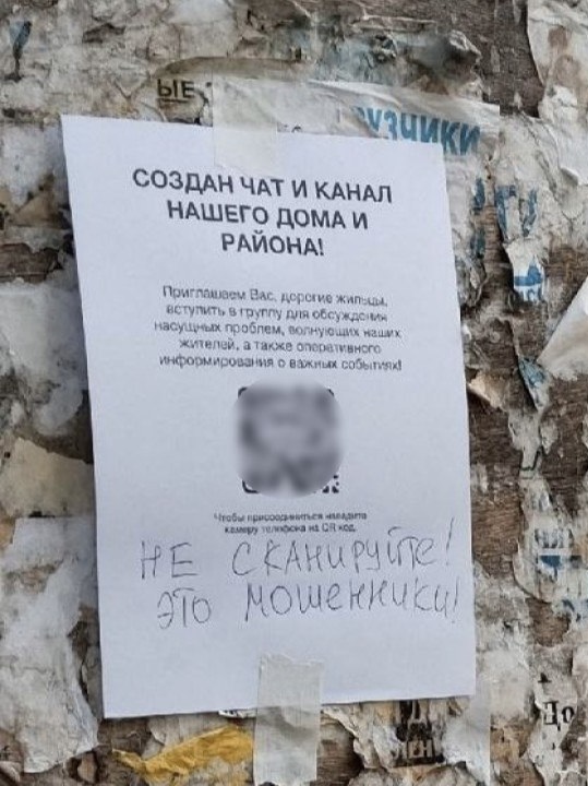 ❗️🏠 Опасные листовки расклеивают неизвестные на домах в Петрозаводске. Вчера на информационных стендах сразу нескольких домов в Петрозаводске появились подозрительные листовки с QR-кодами, по которым якобы можно перейти в домовой чат. На самом деле это уловка мошенников и сканировать их нельзя.