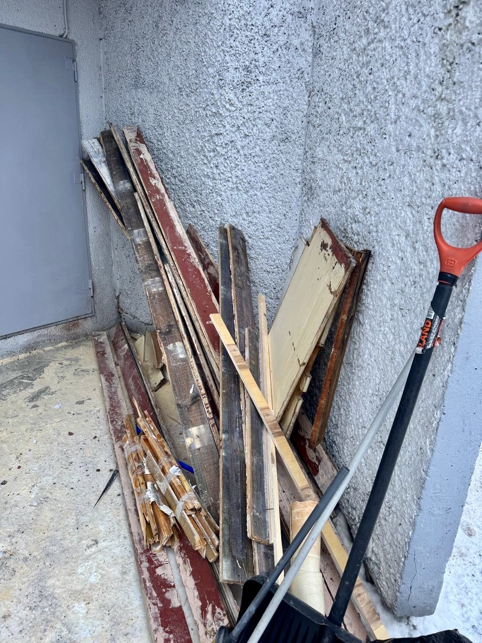 Оставлять строительный мусор у входных групп (на площадях общего пользования) в жилых домах запрещено. Это нарушает правила пожарной безопасности и санитарные нормы.