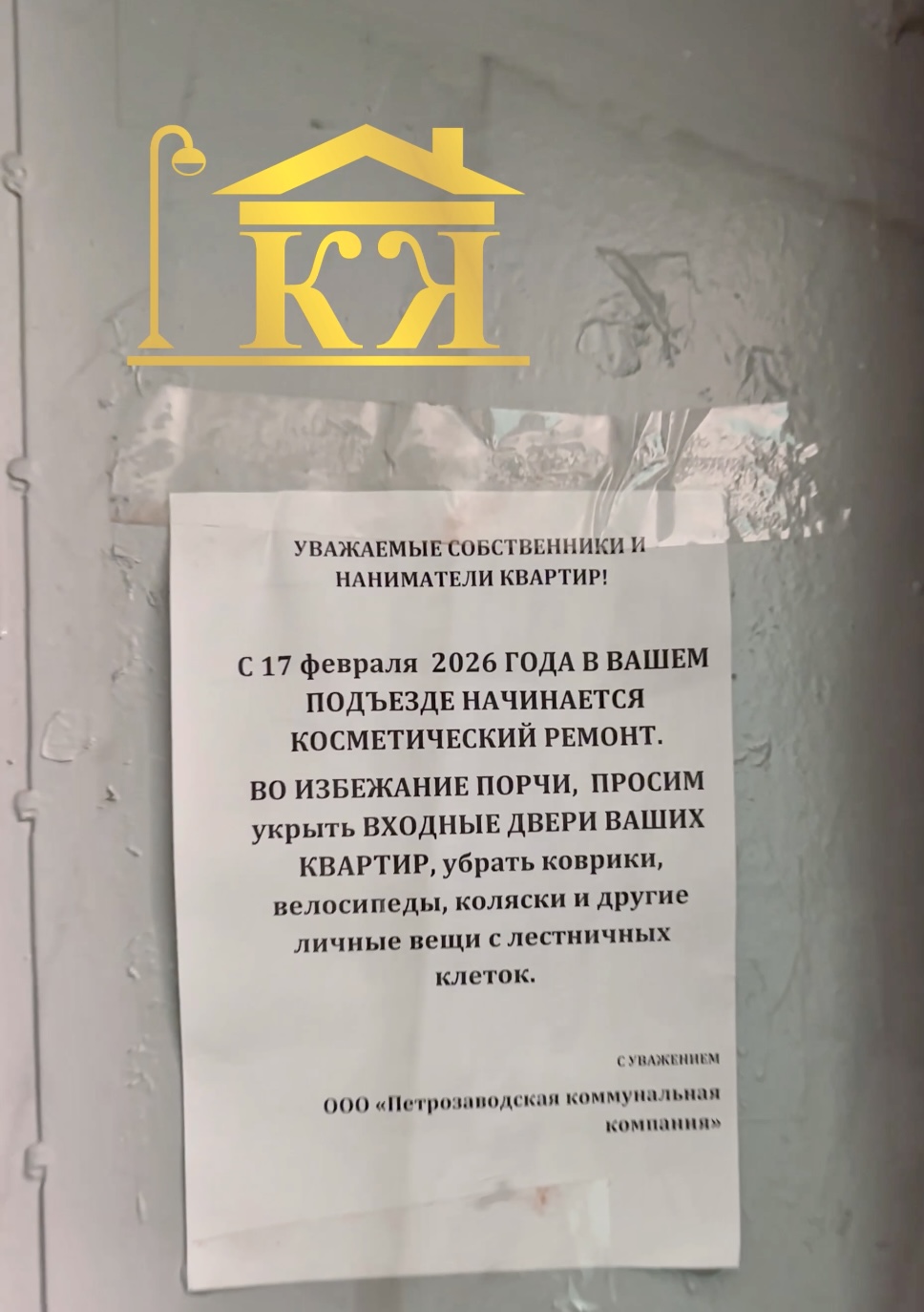 Сообщаем вам, что в пятом подъезде дома № 19/1 по улице Древлянка начался косметический ремонт.