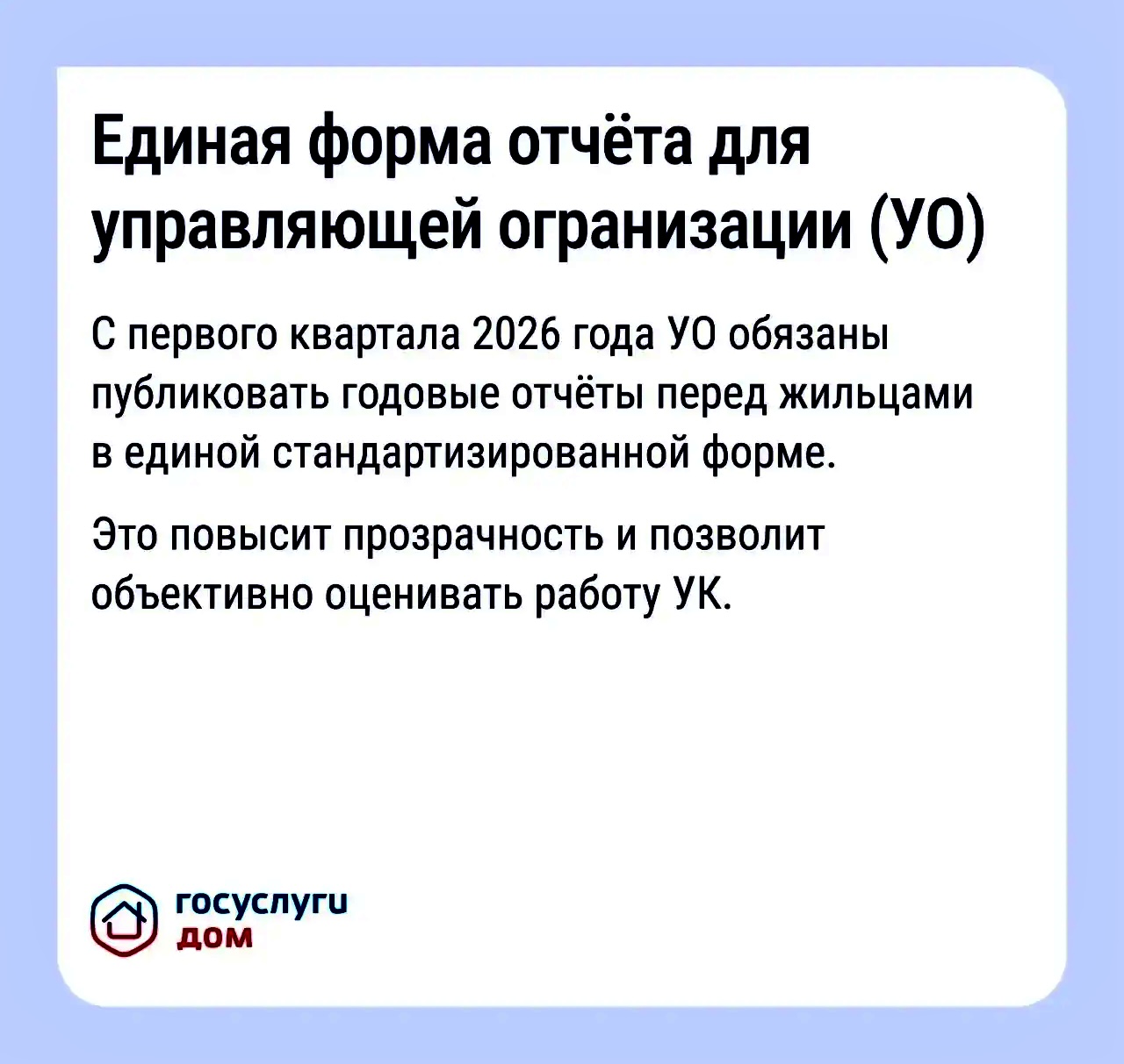 Для управляющих компаний вводится единая форма годового отчета по управлению многоквартирными домами с обязательным размещением в ГИС ЖКХ до конца первого квартала. При этом отчет за 2025 год уже должен формироваться по новой форме. Жильцы же получат доступ к детализированной информации о доходах и расходах управляющей компании, задолженностях, перечне выполненных работ и состоянии дома. Такая стандартизация призвана дать жителям возможность реально оценивать, как расходуются их средства.