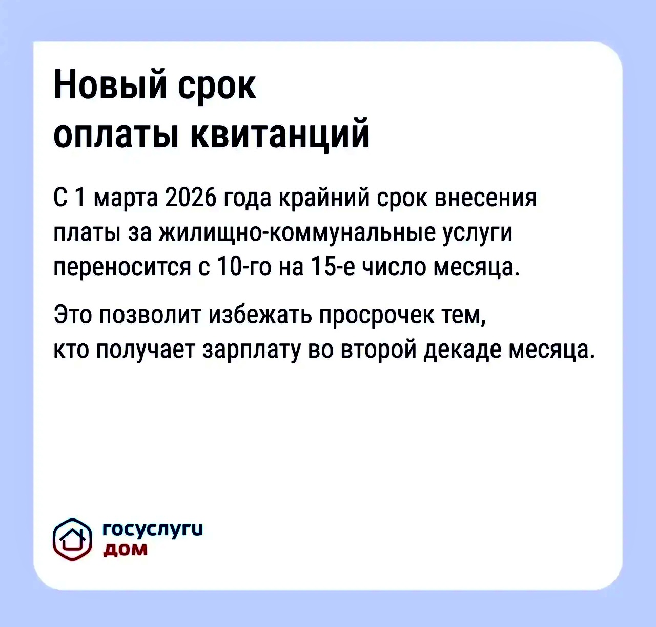 Крайний срок оплаты за услуги ЖКХ в России в 2026 году сдвинется на 15-е число месяца, управляющие компании начнут отчитываться и получать лицензии по-новому, а домовые чаты будут вестись в мессенджере Max.